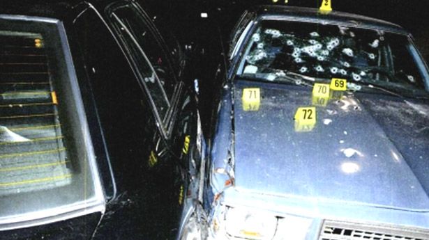 Russell was struck 24 times and Williams 23 times. No weapon was found in the car or along the route, and a forensic mechanic testified that the car, a 1979 Chevrolet Malibu, was prone to backfiring.