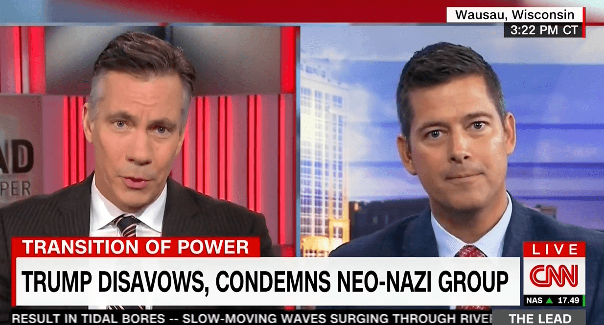 Tuesday in The Lead, fill-in host Jim Sciutto pressed Rep. Sean Duffy (R-WI) over Donald Trump’s disavowal of white supremacists after the Republican representative equated the neo-Nazi hate group to Black Lives Matter and anti-Trump protestors.