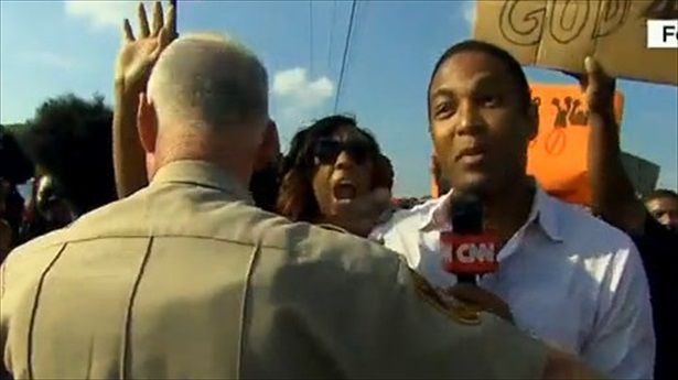 Lemon was filing a live report on The Situation Room when one officer tried to push him back. Lemon said on air that he was not resisting the officer, but was being pushed in the other direction by demonstrators criticizing authorities' response to the fatal shooting of 18-year-old Michael Brown last week.
