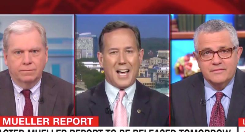 CNN senior political commentator Rick Santorum had one of his patented screaming meltdowns on Wednesday, insisting loudly that the Mueller report was a "nothingburger" until the hosts cut him off.
