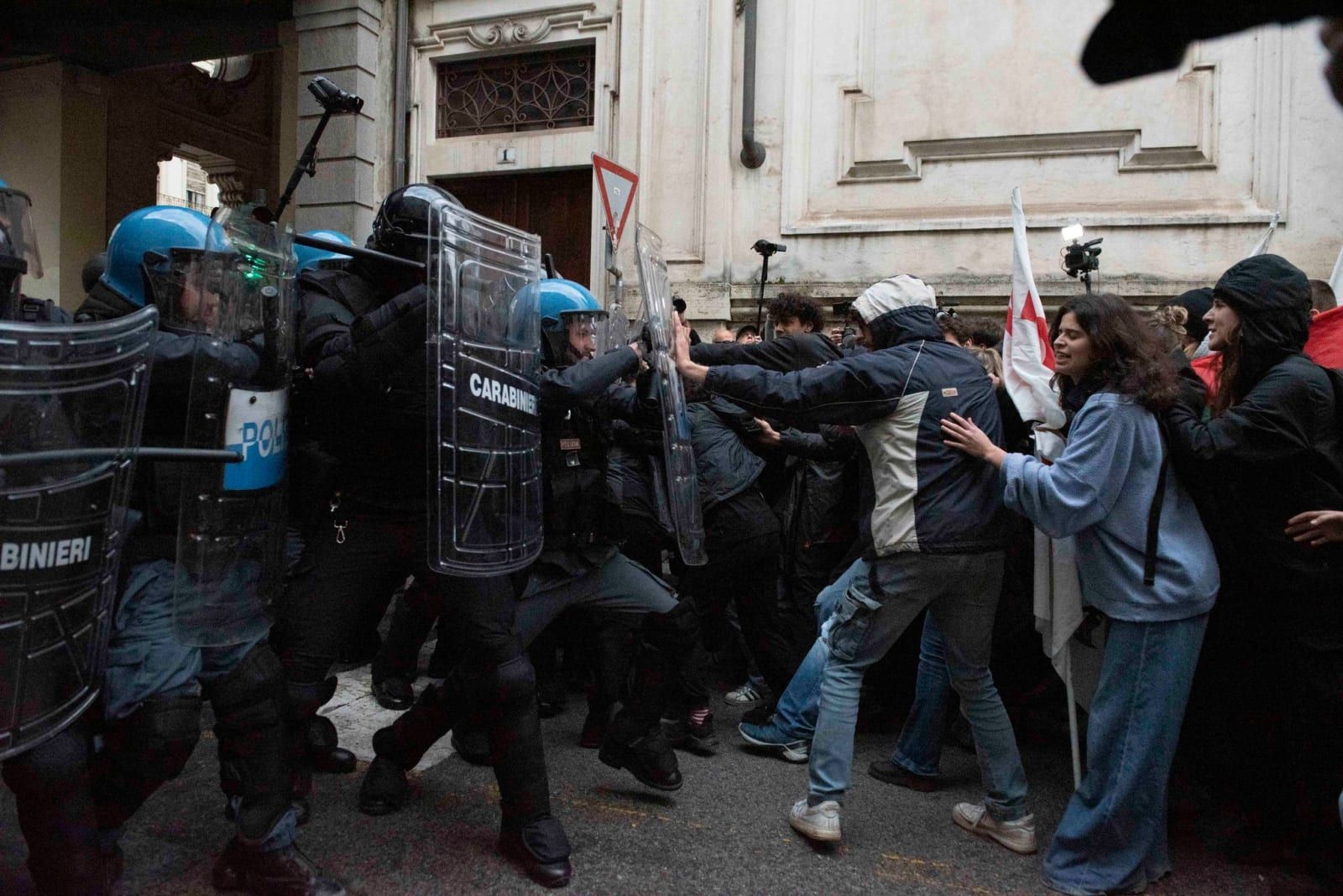 Activists and police clash during an environmental protest against climate change at the G7 Italia Ministerial Meeting on Climate, Energy and Environment taking place in Venaria Reale. Matteo Secci/LaPresse via ZUMA Press/dpa