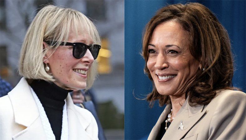 E. Jean carroll, Kamala Harris (Carroll photo via GWR/StarMax/GC Images, Harris photo via AFP)