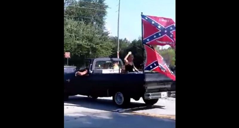 Confederate flag wavers taunt black Georgia birthday party guests as they drive away (Screenshot/YouTube)