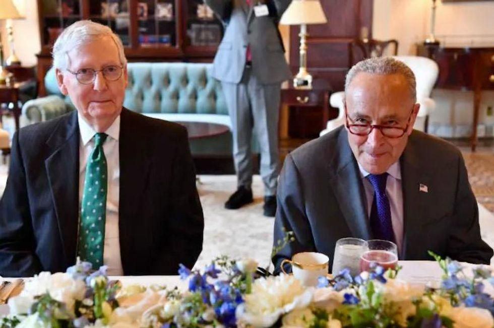 Senate Majority Leader Chuck Schumer (R, pictured July 2021) and Minority Leader Mitch McConnell (AFP)