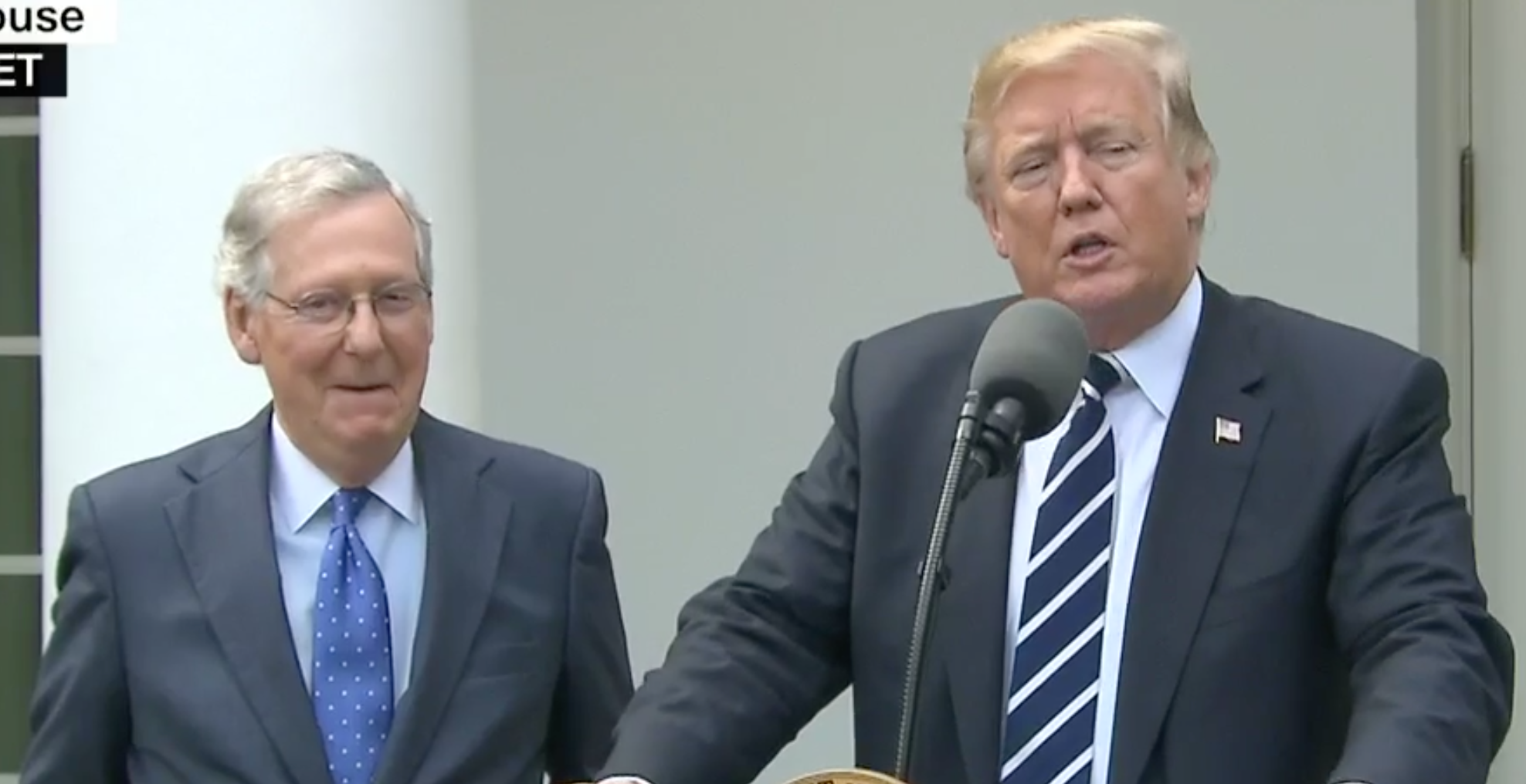 Senate Majority Leader Mitch McConnell (R-KY, left) and President Donald Trump (right). Image via screengrab.