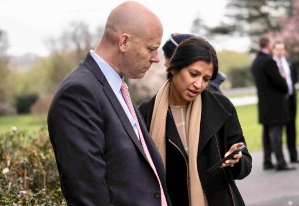 Katie Miller, US Vice President Mike Pence's press secretary, speaks to his chief of staff Marc Short (AFP)