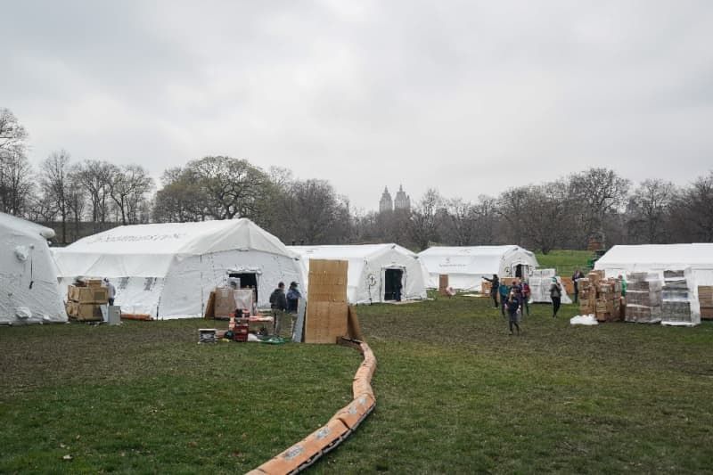 Around a dozen tents, equipped with 68 beds and 10 ventilators, have been put up in Manhattan's iconic park, with COVID-19 patients expected to start arriving later Tuesday.