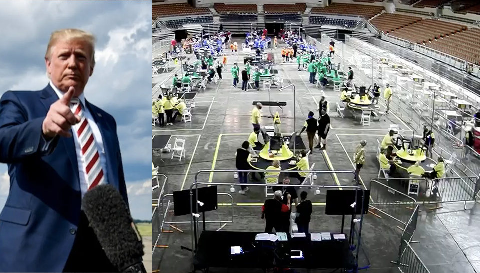 US President Donald Trump photo (AFP / Nicholas Kamm) and screen capture of Arizona audit count