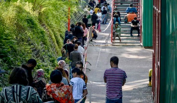 A survey conducted of some 550 of those queueing for food a week ago showed that more than half were undocumented, but nearly a third had a residence permit and nearly four percent were Swiss nationals.
