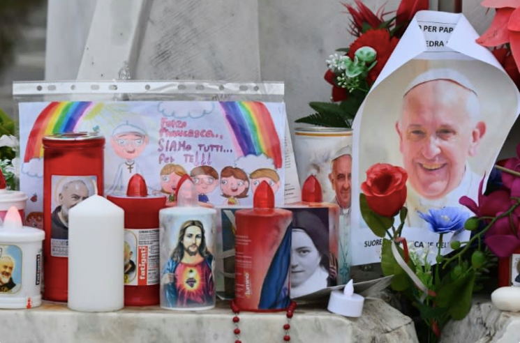 Well-wishers left candles outside the Gemelli hospital, where Francis is in a 10th floor papal suite.