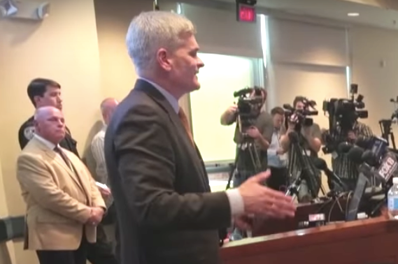 Republican Sen. Bill Cassidy at a rowdy town hall in Metairie, LA (Screen capture)
