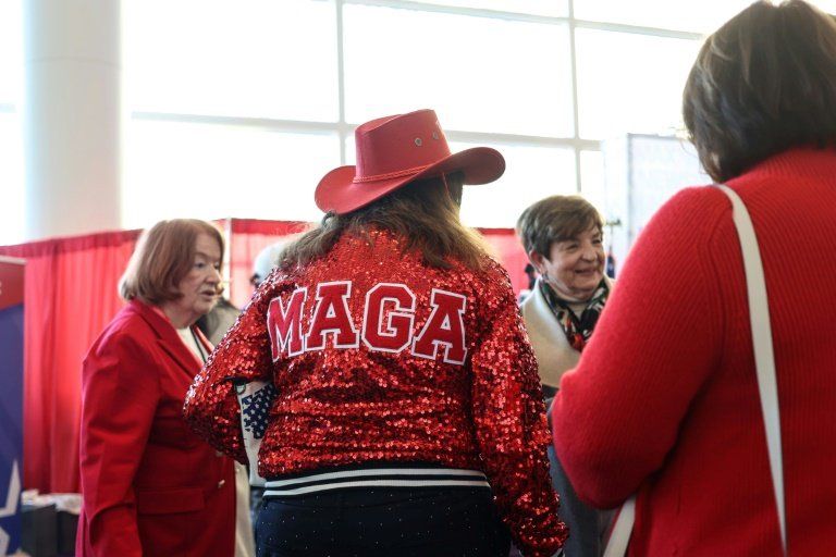 A woman wears a 'MAGA' jacket displaying her support for President Donald Trump at a major convention of conservatives in National Harbor, Maryland on February 21, 2025