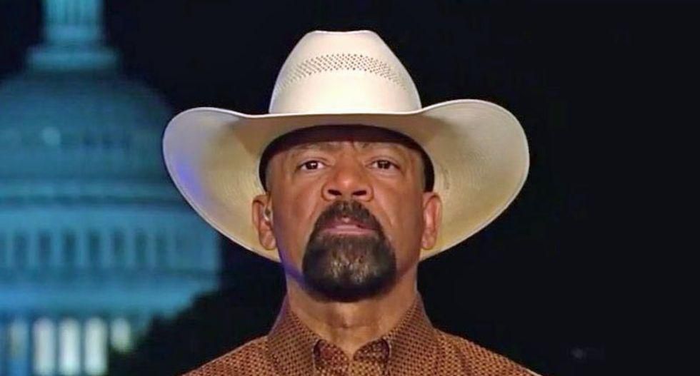 Former Milwaukee County Sheriff David Clarke Jr. likened the January 6 insurrection to a "frat party" today at the QAnon-inspired "For God & Country Patriot Double Down" in Las Vegas.