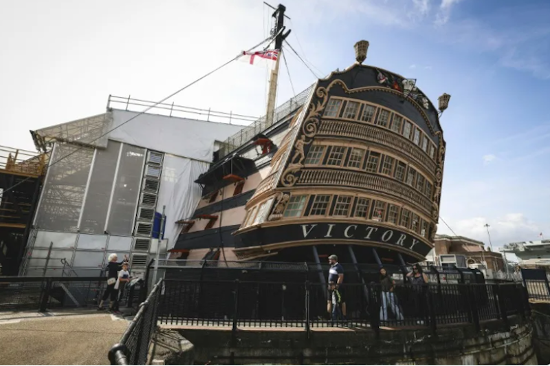 Visited each year by over 350,000 people in Portsmouth Dockyard on England's southern coast, Victory's huge renovation follows the unwelcome discovery that much of the wooden structure was affected by rot.