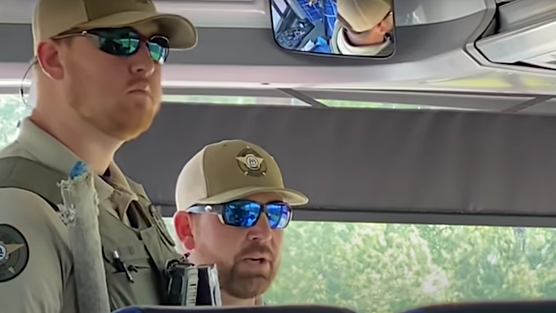 The Delaware State University team was stopped April 20 in Liberty County on their way home from playing a game at Stetson University in Florida, and bus driver Tim Jones said he was initially told the stop was for a lane violation -- but a video taken by one of the players shows a search for drugs, reported USA Today.