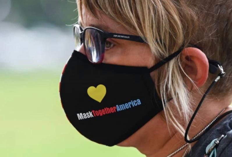 A woman wears a mask at an event honoring those who died from Covid in Washington