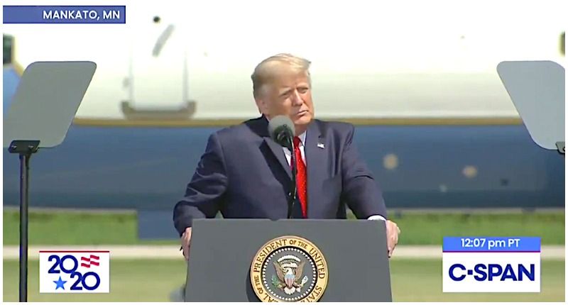 During a speech in Minnesota this Monday, President Trump lamented the coronavirus economy, joking that God was "testing" him by taking away what he says were his tremendous economic gains, forcing him to "do it again."