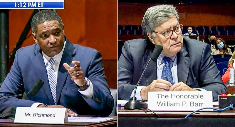 At a House Judiciary Committee hearing, Richmond took issue with Barr's opening statement, which invoked the "nonviolence" of civil rights icon Rep. John Lewis (D-GA).