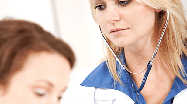 [Image: Hospital Doctor Listening To Female Patient's Lungs via Shutterstock]