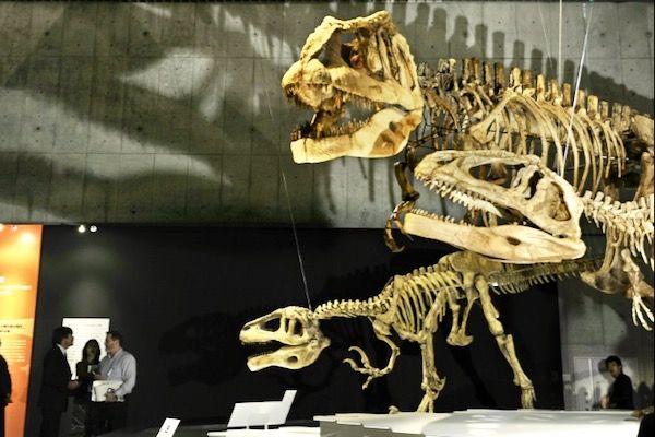 Dinosaur skeletons on display at Tokyo's Science Museum
