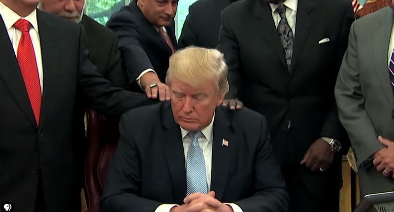 President Donald Trump meets with religious leaders in the Oval Office on the National Day of Prayer. (Screenshot)