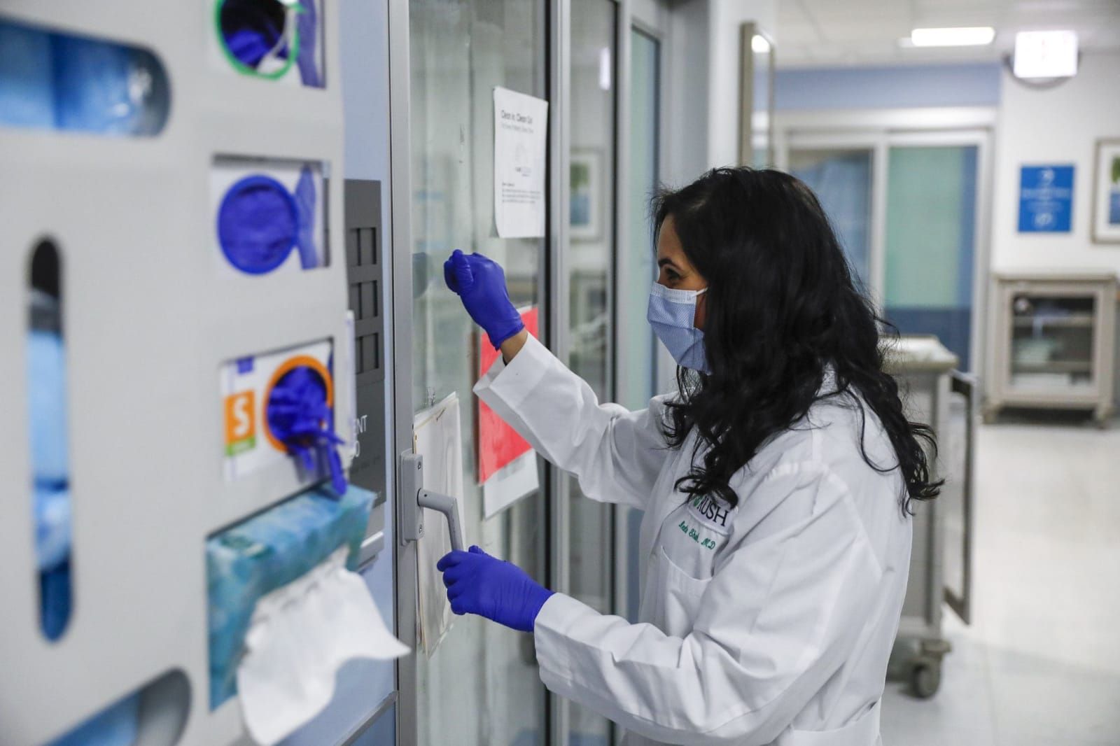 Meeta Shah knocks on the door before entering a room to check on a patient at the Department of Emergency Medicine at Rush University Medical Center in Chicago on Jan. 25, 2021. - Jose M. Osorio / Chicago Tribune/Chicago Tribune/TNS