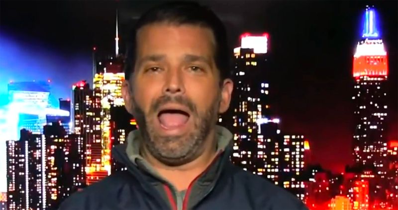 The oldest son of the president appeared with Fox News host Laura Ingraham on Thursday night and went on a frantic rant about the coronavirus -- accusing the media and medical authorities of overstating the dangers of the health crisis that killed almost 230,000 Americans with infection rates surging upward.