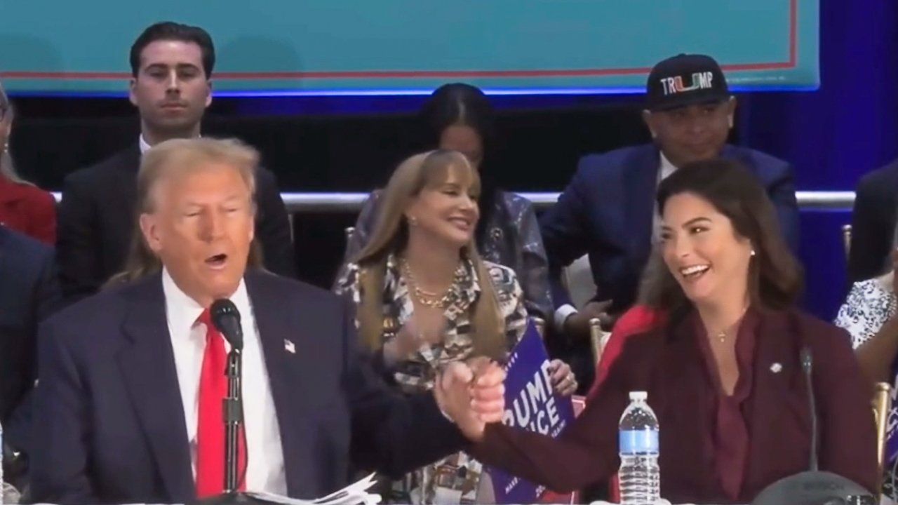 At a roundtable campaign event with Latino leaders on Tuesday, Trump sought to "thank all of the representatives from the Doral area, because the mayor and everybody." He first called on Mayor Christi Fraga.