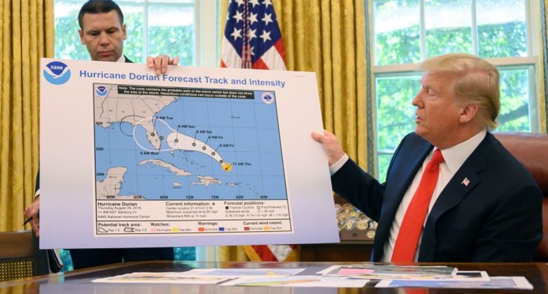 US President Donald Trump updates the media on Hurricane Dorian preparedness from the Oval Office at the White House. (AFP / JIM WATSON)