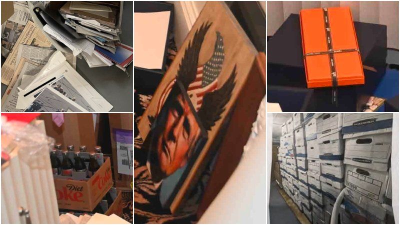 The photos swiftly made their way to social media where stunned viewers found stacked among the secret documents at the heart of his Florida federal court case a Hermes box, crates of Diet Coke and a picture of former President Donald Trump with eagle wing horns.