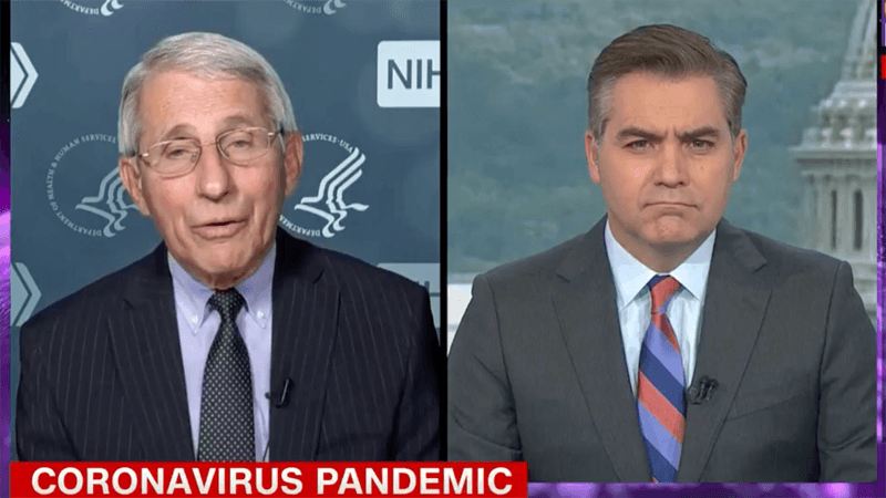 Dr. Anthony Fauci was interviewed by CNN's Jim Acosta as a graphic on the screen announced that 572,174 Americans had died of COVID-19.