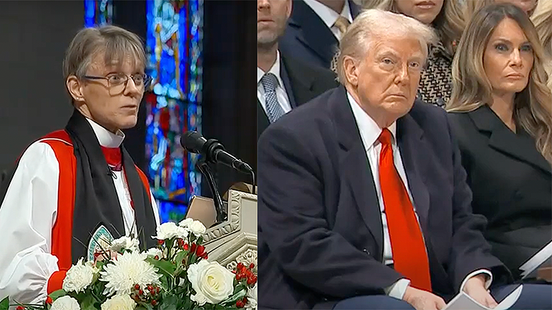 Budde turned to deliver a message directly to Trump and other politicians by saying, "There isn't much to be gained by our prayers if we act in ways that further deepen the divisions among us. Our scriptures are quite clear about this, that God is never impressed with prayers when actions are not informed by them. Nor does God spare us from the consequences of our Deeds which always, in the end, matter more than the words we pray."