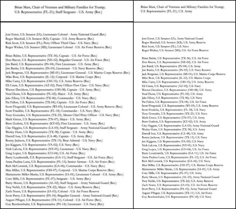Team Trump was forced to retract a letter, purporting to come from dozens of Republicans who described themselves as retired from military service, after the progressive advocacy group Vote Vets looked at their service records and debunked the claim.