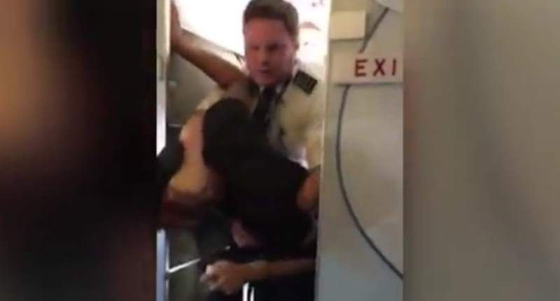 Instead, the footage -- filmed by another passenger -- shows Kerr trying to push his way past the flight attendants.