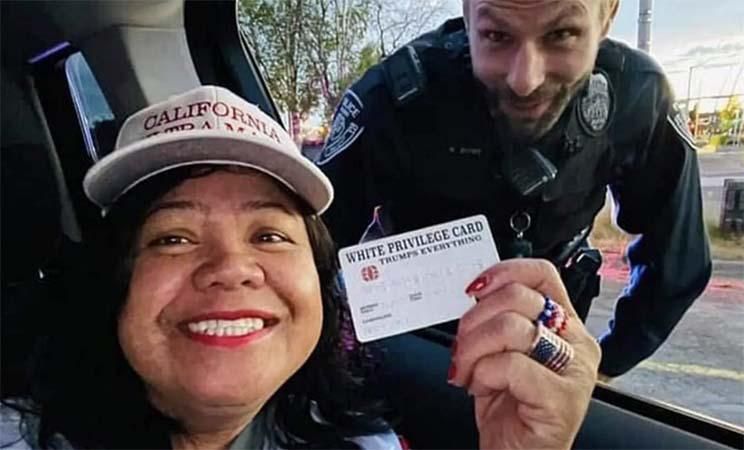 "He laughed and called his partner. It’s their first time to see a White Privileged [sic] card," she wrote, while also sharing video of the stop on Twitter that has since been taken down.