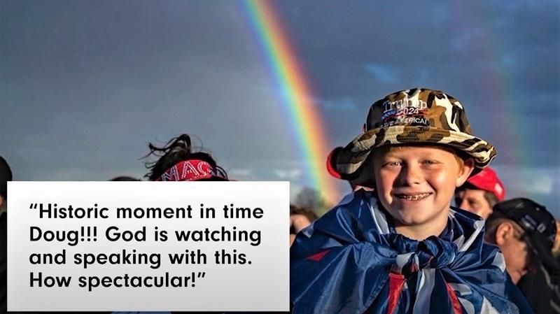 The ad then shows messages that Mastriano supporters sent to him commenting on the rainbow as a clear sign that God was about to put a holy thumb on the scales to help him win his campaign.