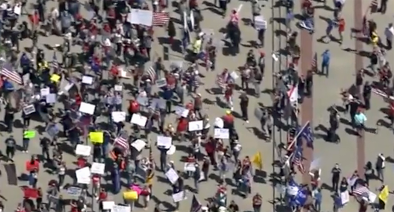 Lockdown protesters at the California state capitol in Sacramento (screengrab)