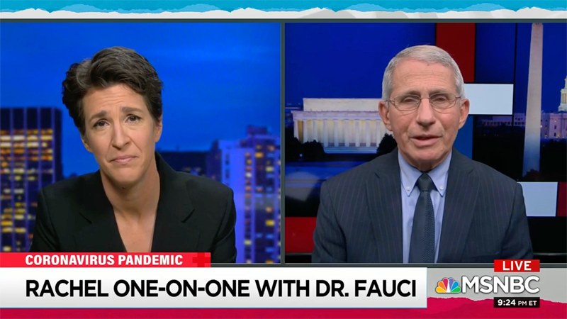 America's top infectious disease expert was interviewed by MSNBC's Rachel Maddow on Friday -- for the first time since the start of the pandemic.