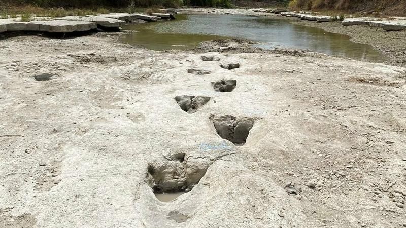 A drought in Texas dried up a river flowing through Dinosaur Valley State Park, exposing tracks from giant reptiles that lived some 113 million years ago, an official said Tuesday.