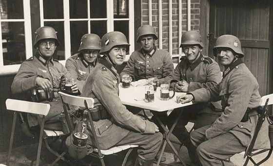 While death squads celebrated among their victims’ graves in the field, local bars and restaurants also served as sites for celebrating acts of mass murder, where heavy drinking was often accompanied by songs that emphasised Nazi masculine ideals of hardness, camaraderie and violence. In a bar in the Polish town of Wejherowo, one witness overheard a group of SS men ‘who had obviously just come from a shooting’ discussing how ‘The damned brains [of the victims] just squirted everywhere.’ Similarly, Marianna Kazmierczak, then a 17-year-old Polish girl working at a restaurant in Zakrzewo, testified that SS men routinely gathered there to drink beer and schnapps, and to celebrate after mass killings in the fall of 1939. In testimony quoted in War, Pacification, and Mass Murder, 1939 (2014) by Jürgen Matthäus, Jochen Böhler and Klaus-Michael Mallmann, she remarked:
