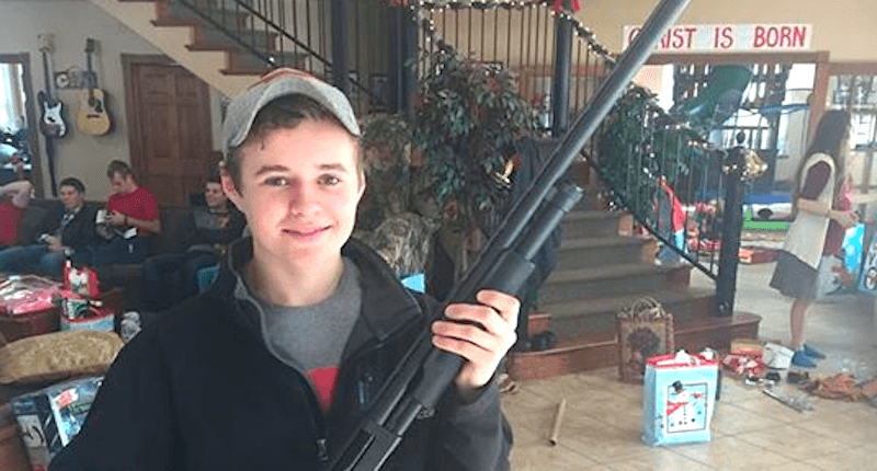 A Facebook photo showing one of the Duggar brood holding a shotgun as the family celebrated Christmas sparked dozens of comments arguing the wisdom of letting teens own firearms.