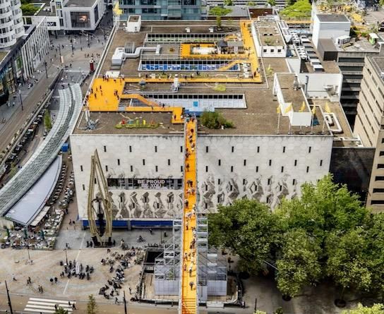 An organization in the port city of Rotterdam has built a skywalk linking the roofs of the downtown shopping area to show what the future might look like.
