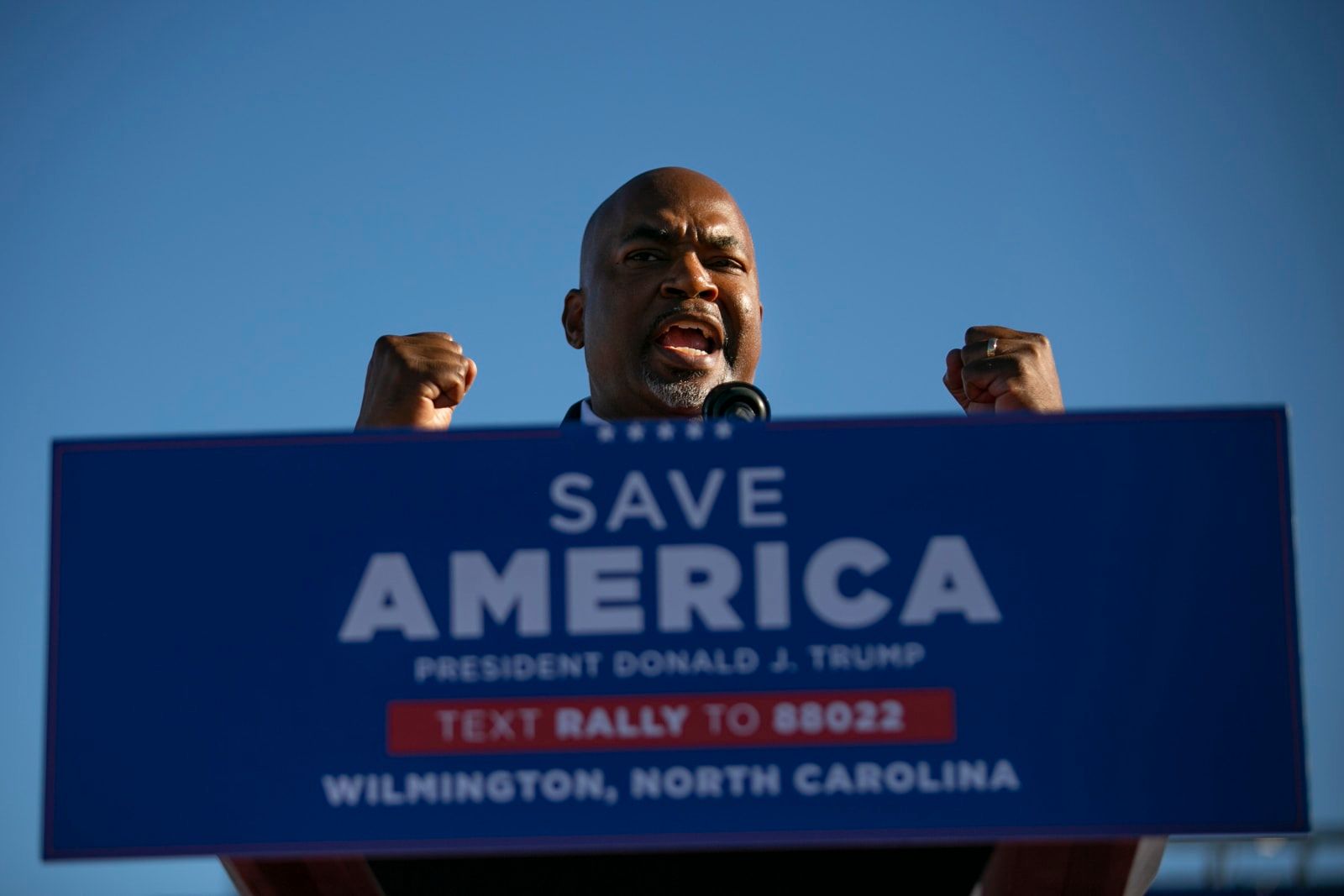 Mark Robinson, lieutenant governor of North Carolina, during a Save America rally for former President Donald Trump at the Aero Center Wilmington on Sept. 23, 2022, in Wilmington, North Carolina. - Allison Joyce/Getty Images North America/TNS