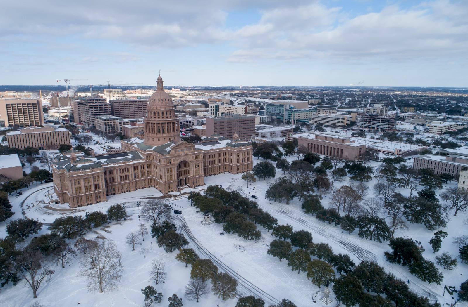 The Texas Capitol grounds are covered in snow on Monday, Feb. 15, 2021, in Austin, Texas. - JAY JANNER/Austin American-Statesman/TNS