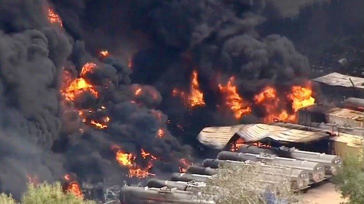 Roughly 60 miles north of Houston in Jacinto County, the explosion and subsequent chemical blaze took place at the Sound Resource Solutions facility, a petroleum processing plant. A source toldABC 13 News that a 1,000-gallon propane tank sits in the middle of the fire while various highly flammable toxic chemicals and materials are used at the plant.