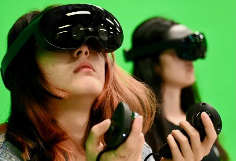 Using virtual reality headsets, students at a Hong Kong university travel to a pavilion above the clouds to watch an AI-generated Albert Einstein explain game theory.