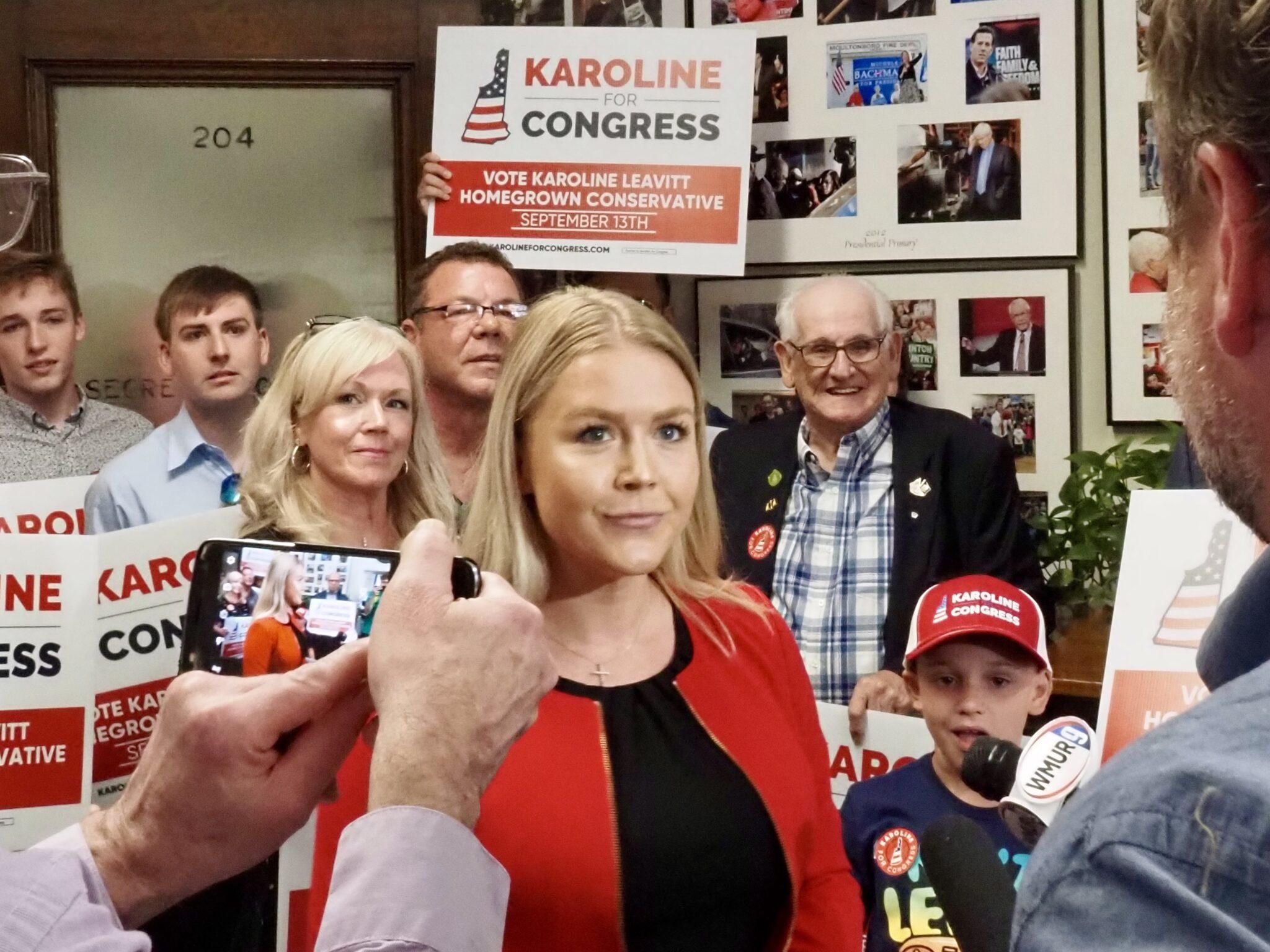 Leavitt, 25, who is challenging Rep. Chris Pappas in the 1st Congressional District, often notes that she worked in Trump’s press office, a job she held from July 2019 to January 2021. She’s questioned the 2020 election results, saying there was widespread “fraud and irregularities.” She has voiced support for “President Trump’s America-first agenda.” She shares his support for securing the border, limiting abortion, and “law and order” policies.