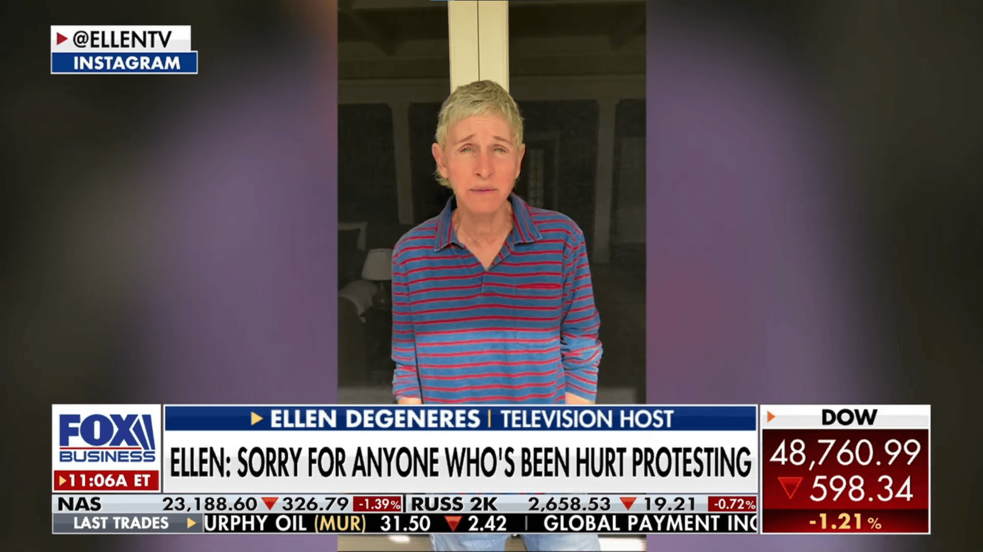 Ellen DeGeneres expresses solidarity with ICE protesters in a video uploaded to social media on Jan. 19, 2026. (Screengrab / Fox Business)