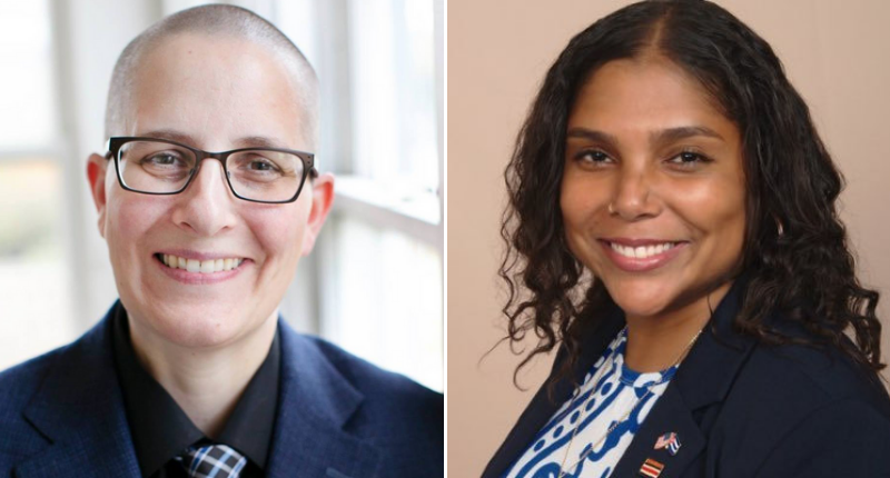 Minnesota Teacher of the Year Kelly Holstine (left, via Wikimedia Commons) and Kentucky Teacher of the Year Jessica Dueñas (right, via Twitter).