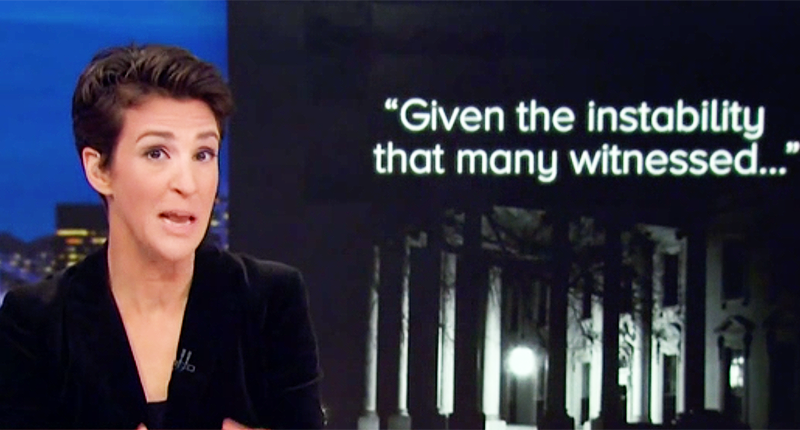 "Maybe we should have seen this coming," Maddow said. "That book with warnings about the president being removed from office this way, that book came out the very start of the year in January. Since then, we got the first book from a former senior advisor to the president. She chose as the title of her book, the word Unhinged, and she was not talking about herself."